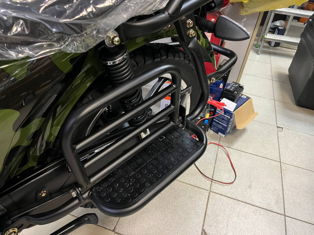 Снизу от багажника установлена дополнительная дуга безопасности, защищающая заднее крыло. При такой конструкции можно приобрести тележку, которая повысит функционал в бытовом плане.