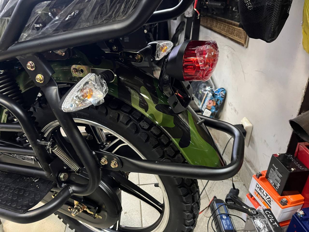Рамки для перевозки грузов – это ключевая особенность мопеда, он буквально со всех сторон ими увешан: