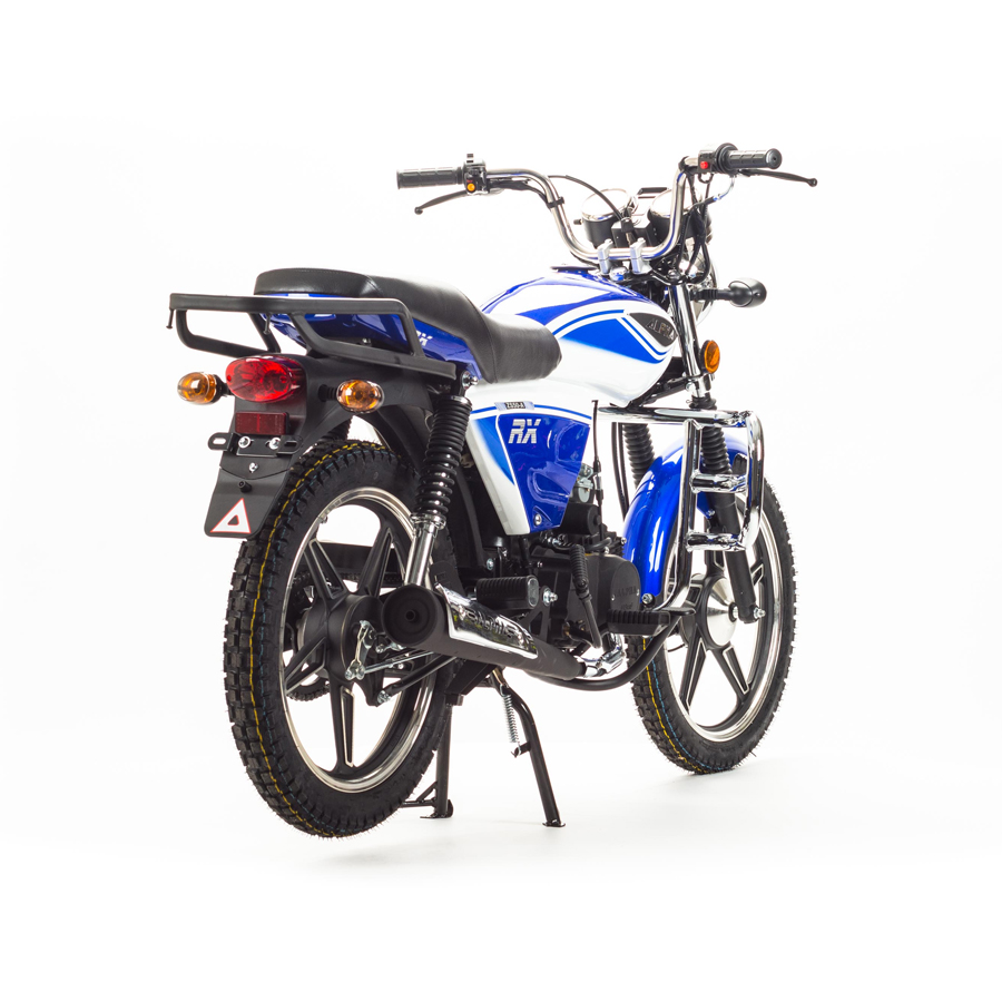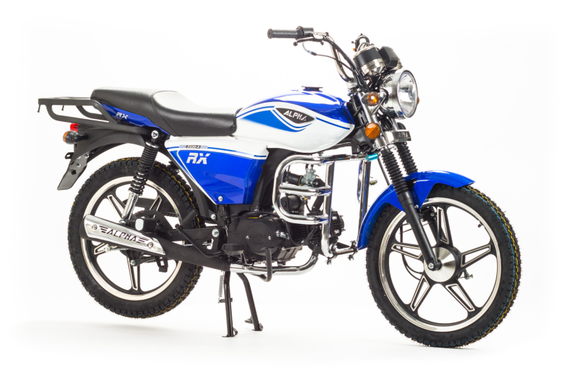 MotoLand Alpha RX 11 это продолжение легендарного и всеми любимого мопеда Alpha, внешний вид приобрел современную и эргономичном форму, было добавлено достаточное количество хромированных деталей, которые придают солидность. Выпускается в трех цветах: красный, синий, черный Мопед можно использовать для самых различных целей: для одиночного или совместного передвижения в городском потоке, сельской местности, поездки на природу, рыбалку и охоту При этом он универсален и подходит мотолюбителям любого возраста,и опыта вождения. Для подростков, подойдет как подарок и первый мотоцикл для только начинающего свое знакомство с миром мототехники Взрослых, которым нужна техника для поездок из точки А в точку Б и обратно, именно в таком режиме он способен показать себя с лучшей стороны. Мопед полностью отвечает требованиям к безопасному движению по городу и за городом: оснащен фарой дальнего и ближнего света, поворотниками, стоп-сигналом, звуковым сигналом, зеркалами заднего вида, габаритными светоотражателями Техническая сторона Мопед поставляется с 50 кубовым одноцилиндровым четырехтактным двигателем с воздушным охлаждением ZS50-A (139FMB) конструкция которого полностью повторяет знаменитый мотор HONDA CUB. Установлен карбюратор PZ19 с системой обогащения и пуском в любую погоду и время года. Двигатель работает ровно, имеет высокую мощность в широком диапазоне оборотов, что позволяет комфортно трогаться и быть уверенным, что двигатель не заглохнет в неподходящий момент. Двигатель имеет возможность легкого запуска с кнопки на руле, так как имеет электростартер, а при необходимости можно воспользоваться кик стартером. Механическая трансмиссия содержит 4 передачи При покупке мопеда, в подарок мы даем улучшенную поршневую. Мопед имеет хорошую динамику разгона, расход 3 л на 100 км, объем бака 8л. Передняя подвеска телескопическая, с защитной гофрой. Задняя подвеска состоит из двух гидравлических амортизаторов, с прогрессивной пружиной Вес мопеда 86 кг, выдерживает нагрузку до 150 кг. Колесные диски алюминиевые, размер колес — 17 дюймов (430 мм). Барабанные тормоза установлены на переднем и заднем колесе. На передней электромеханической приборной панели расположены спидометр,тахометр а также датчик включенной скорости